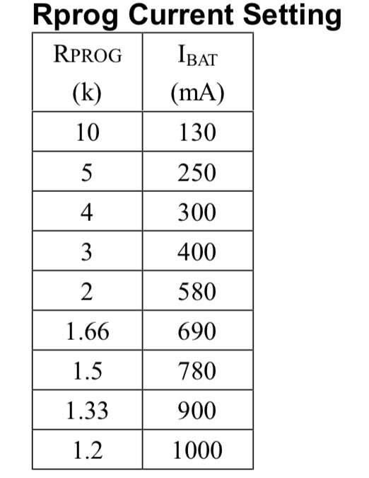 If you want to set to a ‘safer’ charge rate of 0.5C or 500mA, from the table above (taken from the TP4056 datasheet) this would be achieved by using a 2k2 resistor (yes it appears to be a 0805 size).