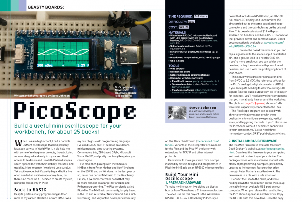 mmbasic rpipico is imho great hobbyist system and want to let others know and magazine articles do that. nice.