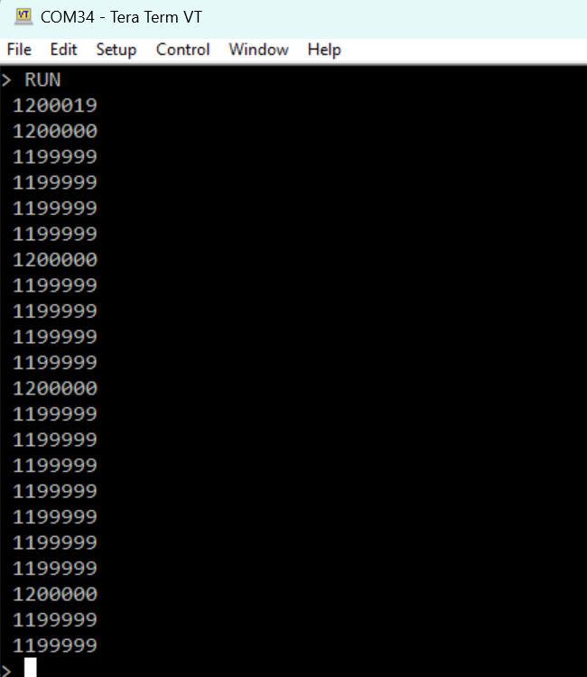 The COUNT function uses interrupts and will easily do what you want. Count pins are automatically set up with hysteresis to avoid noise. Easily proven. Connect GP0 to GP8. SETPIN GP0,pwm setpin gp8,cin pwm 0,20000,60 settick 60000,myint do loop sub myint a%=pin(gp8) pin(gp8)=0 print a% end sub Edited 2023-11-09 20:18 by matherp |
