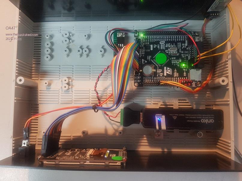 I am working on a Armmite F4 project and for portability reasons I would like to run on a battery so I thought about using a soft switch (momentary switch) to turn the unit on and it can be turned off via software using a button on the display or if a certain amount of time has elapsed without user input. I hunted around the workshop for some components and this is basically the circuit that I came up with. ![]() I built the circuit up on a piece of veroboard and mounted it in the case. I am using a cheap 2AH powerbank module to power the system. ![]() This circuit may be usful to other members of the group. Cheers 0A47 |