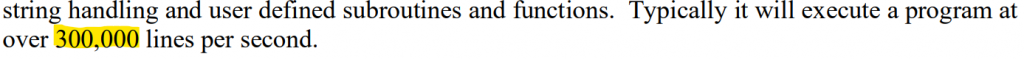 Performance is PC dependent (I get 10 to 20 X this value)