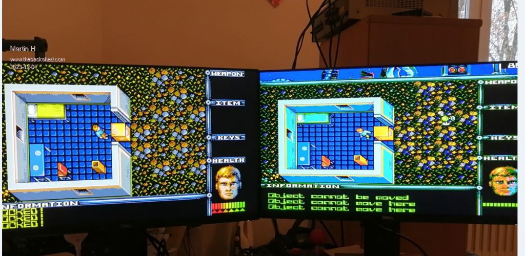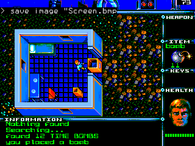 Yes, tried, works. In the video I had the problem to have moved away the box and the item was no longer in it. Nice Loading Message .. If I may make a wish, I would like to have a fade_in from the loading message into the game like here: 'game play variables spn=0 'sprite number em_on=0 '1=is emp active mg_on=0 '1=magent in use FRAMEBUFFER write l:fade_in:FRAMEBUFFER write sc$ Timer =0:playtime=0 'time played in ms (untested on Game*Mite) I thought I had found another bug. You can block your own path by placing boxes in external doors but the same thing happens in the Dos version. so its not a bug but There's a slight difference: In the Dos version, objects in the direct area of the bomb can be destroyed. and you can move on on Pico they just open and you are stuck .. esc to end the Game ![]() Edited 2023-12-01 19:14 by Martin H. 'no comment |