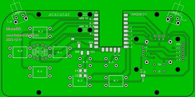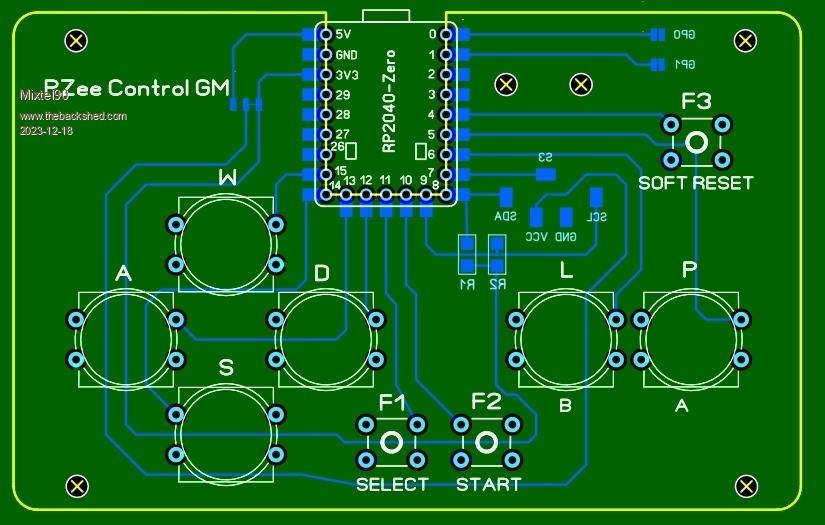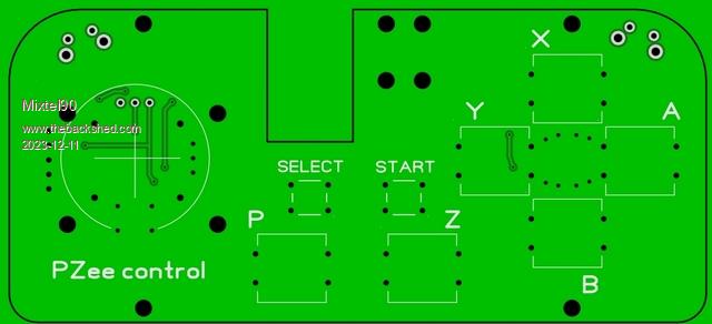 The slot in the top accepts a RP2040-Zero fitted from the bottom of the board. The two shoulder buttons are fitted underneath the board, the gap between the board and the back