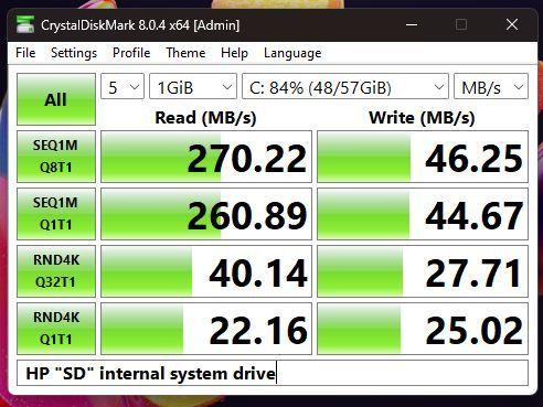 Speed test on the "SD" system volume on that laptop: ![]() For W11, this is not really very good at all..... Check out the write-speeds. Crikey. ![]() Smoke makes things work. When the smoke gets out, it stops! |