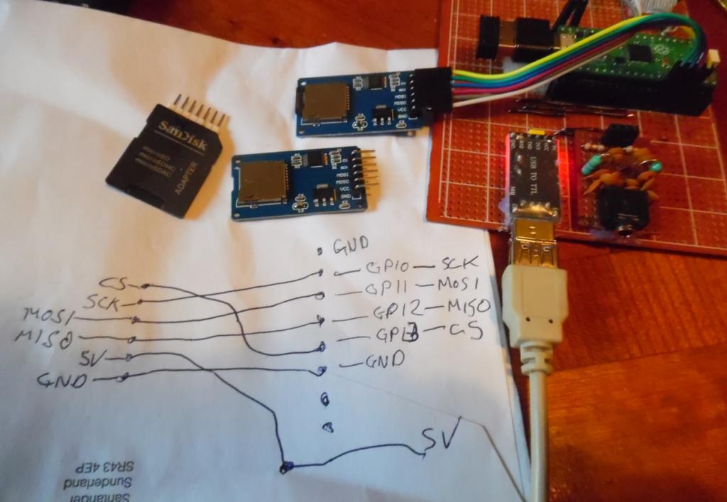 I tried 2 sd cards. one 2 wav files the other a bmp. they read with the soldered sd card adaptor for a minute then said sd card removed. on the forum "they are iffy".