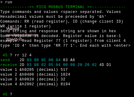 Forum Index : Microcontroller and PC projects : PicoMite and MODBUS