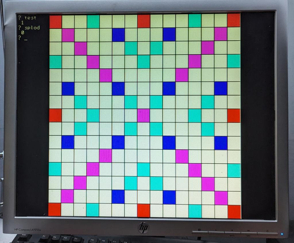 Hi Peter, It is a nice board, drawn in mode 1, should be workable. To make the game 2 player with dictionary checking seems a relatively simple task from here. But to play against the pico (the AI) is a different cooky. When generating the index already takes significant time, finding just any word that fits on a certain location on the board will be similar to worse(*). And then find the best word (most points) is factors slower. And then expand that to "any word, anywhere on the board". I do not think this is something for me. Too complex. Volhout (*) let's assume there is an "A" the board on location (5,5). You no only have to process all words that start with "A" in 2 directions, but also second letter (so the "xA" words in 2 directions. And these are indexed. But also all words in the dictionary that have the "A" as the third letter, or the 4'th. And it gets insanely more work when there is a "D" in location (7,5). The rules to do this are pretty simple, and for each word you can calculate the value, and decide for the best. But it will be very time consuming. Actually... if you look what you will have to do for the AI, I think the indexing won't help at all. The indexing will be usefull to decide quickly that the word typed in by the human, is approved. PicomiteVGA PETSCII ROBOTS |