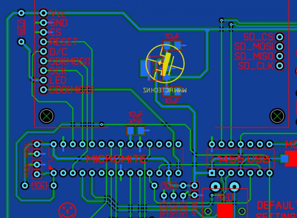THIS one has me totally confused. I designed a PCB to use a 9341 SPI LCD coupled to a 170 MM2 chip, and that board worked fine - so did the LCD. I then redesigned the board to allow for an extra button, BUT the layout to the LCD remained EXACTLY the same as the old board, but the LCD won't work in the new PCB. All I get, is a bright-white LCD, but it never seems to initalize. If I take the LCD and the MM2 chip, and plop them back in the OLD board, everything works just fine. Now, I know what most of you are already thinking at this point - the PCB is bad or has a disconnection on one of the tracks between the LCD and the MM2 chip. NO, IT DOES NOT! I have traced out all lines between the LCD and the MM2 chip, DIRECTLY on top of the LCD, and on the top of the pins of the MM2, so that this also tests the connections in the sockets for the LCD, and also the IC socket for the MM2 chip - ALL signal lines are intact, and zero ohms. None are a high resistance or anything like that, they are ALL there, where they should be. I tried a couple of different LCD modules on the NEW board - they WON'T work, but they WILL work in the old board. I'm out of ideas at this point, as it does not seem to be the LCD, the MM2 chip, the PCB tracks OR the connectors for the LCD and the socket for the MM2. Electrically, it traces out as exactly the same as the one that DOES work, but it will NOT work on the new board. I'm now left scratching my head, as I cannot work out what the hell is going on here..... Here is an image of the relevant part of the PCB layout: ![]() OPTION LCDPANEL ILI9341, RLANDSCAPE, 26, 24 MMBASIC ver 5.05.01 About the only thing I can now think of to test, is that we have one or more lines between the MM2 chip and the LCD, that are shorted to ground(or each other) or something, so I will test for that next. There HAS to be a reason..... ![]() Smoke makes things work. When the smoke gets out, it stops! |