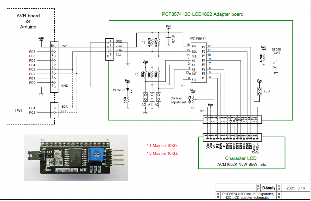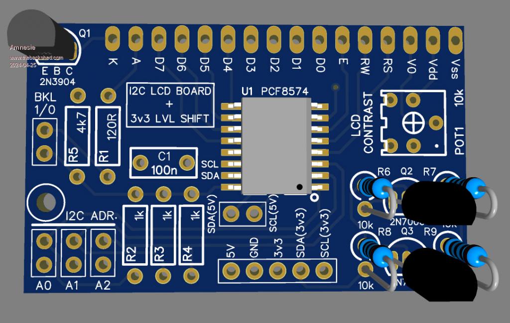 Hello Daniel, I have been using the standard I2C backpannel on 3V3 microcontrollers for years. I only made a modification for the I2C bus. Removed the two resistors from 4K7 and connected two resistors to the I2C bus to the 3V3 if they are not already present on the bus. And replace the LED jumper on the PCB with a 120 ohm resistor(backlight). And if you place the 2004 LCD or 1602 LCD directly (parallel) to the microcontroller, take the 5V into account. You could include 120 ohm resistors (haven't tried yet) in the cables or a level shifter. Jan |