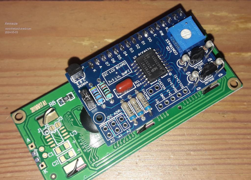 Hello Jan, this is problematic if I understand you correctly. In fact this was my first idea to work around the level shifter too. BUT: If you look at the datasheet carefully you find: "VIH High-level input voltage 0.7 × VCC (min) VCC + 0.5" (max) This means if you feeding the PCF8574 with Vcc 5V but pulling the SDA & SCL on 3v3 we don't match those requirements: Since: 0.7 * 5V = 3,5 which is minimum needed to recognize it safely as HIGH, but we only have 3,3V. So your attempt may work (or in fact does work since you've tested it) but this relies more on luck / tolerances of the individual chip and manufacturer. I also thought about this, but came to conclusion that it isn't good design practise. And more over: think of the case you don't have good 3,3 Volts but even less... way more out of specs... Don't get me wrong, I believe that it works for you... But it isn't safe. And by a fresh design I also got rid of all (other) SMD components Greetings Daniel |