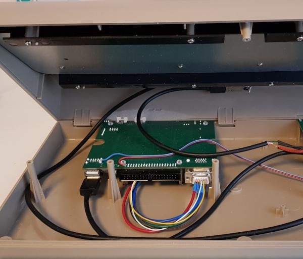 Both computers share the keyboard, which in fact is a USB keyboard. Unfortunately the keyboard layout deviates in many ways from modern keyboards, so I had to patch the firmware to get it right.