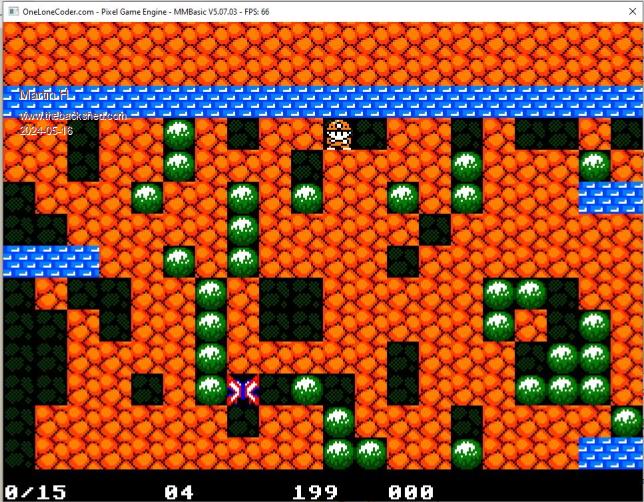 What I can find, boulderdash does not have water, but it has walls. Volhout PicomiteVGA PETSCII ROBOTS |