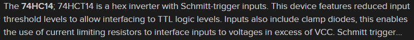 I want to square-up my encoder signals with this Schmitt trigger which is 3.3V compatible.