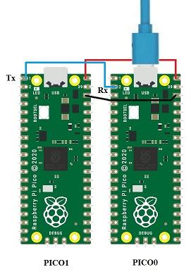 So to check what's happening I setup a simple system using 2 raspi PICOs as shown: