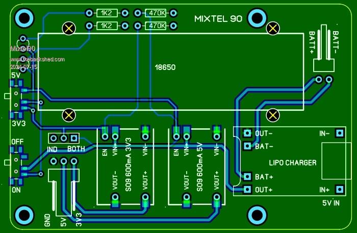 Final version of the power supply. This might be useful for several projects as it's a directly stackable power bank that's mechanically compatible with any Raspberry Pi boards. It can also be used as a fairly general purpose supply as the output can be switched between two different voltages. The output is 0.6A, which is enough for a lot of things, and as it's from a buck-boost converter it's short circuit protected. The battery is one or two 18650 cells. PSU construction pack.zip It's quite possible to make the output voltage variable within limits using a pot. Be careful though as it's also quite possible to mess the feedback network up. :) The fixed resistor version noted in the manual works well. The little switches I used came from AE and are *tiny*! Fit and test them first. Mick Zilog Inside! nascom.info for Nascom & Gemini Preliminary MMBasic docs & my PCB designs |
