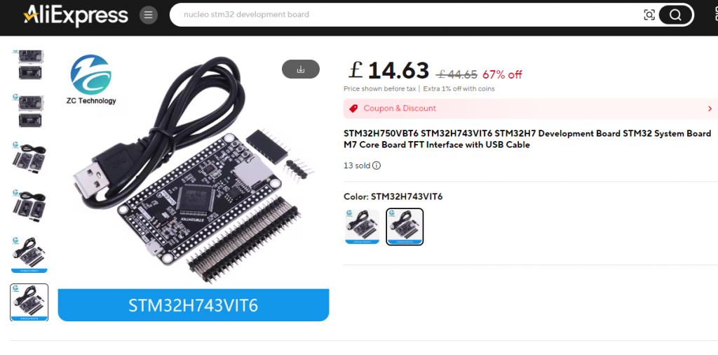 Hello Community, It's me again, looking for a STM board, which could be MMbasic compatible, I found this STM-Board too. (see Link) Is it compatible with MMBasic? Does anyone have experience with this board? Many thanks in advance for your assessment, Wolfgang https://www.amazon.com/-/de/dp/B09GCD3WVD/ref=sr_1_1?__mk_de_DE=%C3%85M%C3%85%C5%BD%C3%95%C3%91&crid=2K2AJN0GUQTDX&dib=eyJ2IjoiMSJ9.OpyomquZPTF07tUG4EBtY4kK7kKYMTKezueDgViIhPMvTQwub4JC5BShTg2iW5KUbqc887fv78ywZGCo1uh8aZHBS1WSF3tsCTXLaV0K0lLN4DiaG_IwhHR8YMWOfRJ_STk_PpcS9RTSzxbBSxRL31uTVBKkCKYvsWJDskG6tkX8rnj9fOhB0oLoFkudPngcxq_xQInAzfFB4KUlendGm8CiCIcrSZlqTHeMGPV8Y_c.AptRUxsDupXp0bIrYPTs-DkFtMnjtrw1I62dNljvows&dib_tag=se&keywords=STM32H750VBT6+Development+Board+ARM+STM32H7+Programmable+MCU+Controller+STM32+Cortex-M7+System+Board&qid=1724315173&sprefix=stm32h750vbt6+development+board+arm+stm32h7+programmable+mcu+controller+stm32+cortex-m7+system+board+%2Caps%2C644&sr=8-1 |