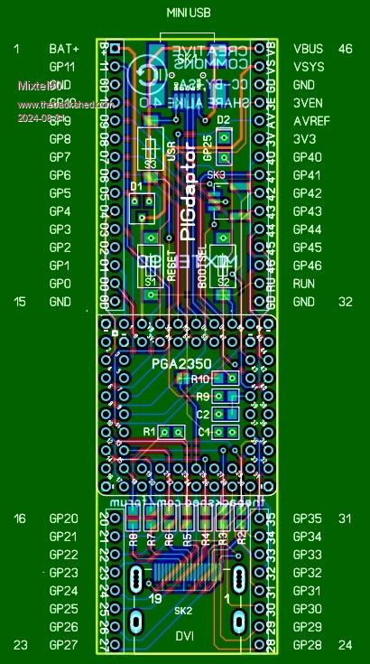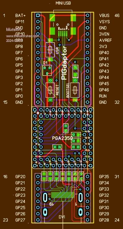 Whether this is worth it when Pimorini's Pico 2 Plus board already has everything for only £3 more than the PGA2350 I don't know (except that I think this might have more IO pins). It's an interesting exercise though.