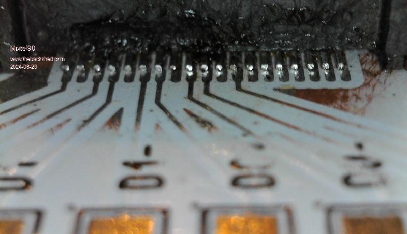 This was a mess to start off with as the solder mask was still on and I had to sand it off before I could start! It is my very first attempt at 0.5mm pad pitch though, so I hope you'll forgive some melted plastic.