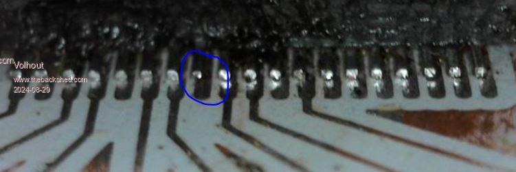 I would check this pin.... It looks the soldering is different.