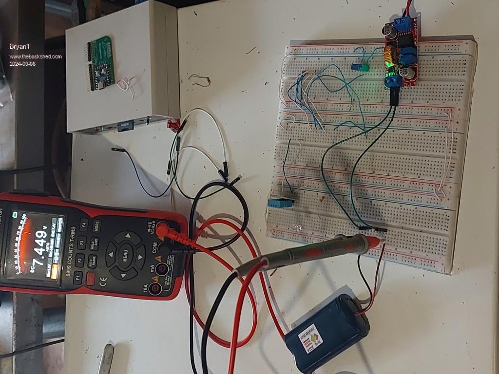 Edit: Well 9.6V was too higher a voltage as when the DC-DC board cut off the voltage dropped to 7.4V. So dropped the voltage to 8.6 volts. Now with the input voltage at 12 volts 680mA is the current draw on the power supply so I do think just hooking up the project to a 5 watt solar panel on a sunny day will charge the battery.