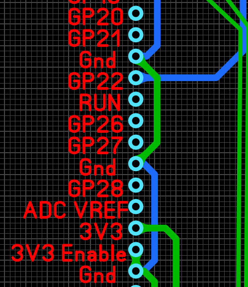 Ok saved the pico board and the LCD header as macros and started from scratch   managed to route every pin to the pico manual with only the 5V and 3V3 power lines needing a jumper. So this can now serve as a template as the pins left will be the same for each one.