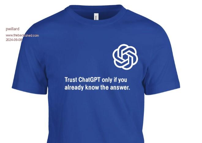 I haven't tried ChatGPT. I use perplexity.ai--but not when I think Iknow the right answer. When I can recognize answers which are clearly wrong, then sometimes I can drill down to get an at least plausible answer, with sources noted which I can follow for further clarification. But too many times the original answers are so clearly wrong that it would not be reasonable to ascribe intelligence to the source. I have found AI to be a valuable research tool to at least provide a path to an answer--far better than google search, which was itself far better than the old school method of having to go to the library to do research--or to have to take classes or find a mentor or apprentice oneself. PicoMite, Armmite F4, SensorKits, MMBasic Hardware, Games, etc. on FOTS |