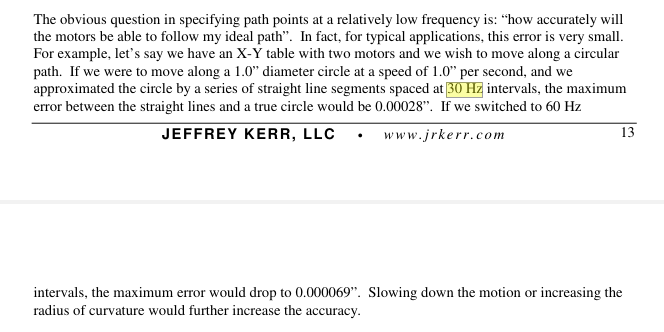 This is assuming that you are talking about driving the head directly. Things change if the machine does some of the work, and you tell it to move 100mm then you wait until it says done. Sample rates don't matter so much then.