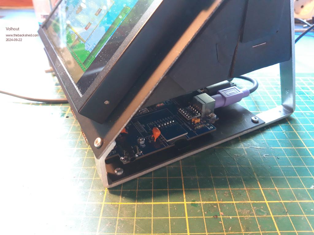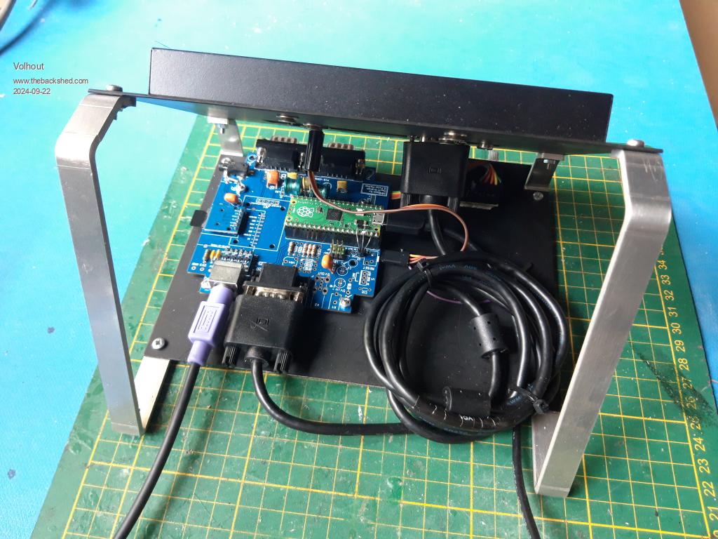 After years of moving 19" monitors around the house every time I wanted to code something, or test something, I ran into two aluminum brackets, mounted to an LCD panel. This was part of a demonstration kit from TI. The LCD was a LVDS screen, so I tossed it, and decided to use these 2 brackets for my new rig. Looking at the future (Peters new 2350 board, and Mixtels recent designs, a 10x10cm pcb was all I would need to accomodate. So I took Mixtel's PicoGameVGA as my platform. For screen I took the 7" IPS monitor I bought 1 year ago, since it has VGA, and also..HDMI... It is powered from USB-C -or- from 12V (dc jack). I tried it, and running 5V at the DC jack also works... And audio amplifier, and 2 5cm speakers complete the rig. The speakers are different, but what the heck, they make sound.... I will use this rig to complete the 6.0.0 excecise for the games I own, and once Peters board come available, this will be the HDMI test rig. ![]() ![]() ![]() ![]() ![]() As you may have noticed, the loudspeakers are in a carton box. I made a carton template for the wood to cut, but after spray painting it, it proved to be sturdy enought to use it as is. Not the nicest, but .... The 2 mounting plates are FR4 spray painted black. Finally I have a system that I can transport easily... I am happy with it.. Volhout PicomiteVGA PETSCII ROBOTS |