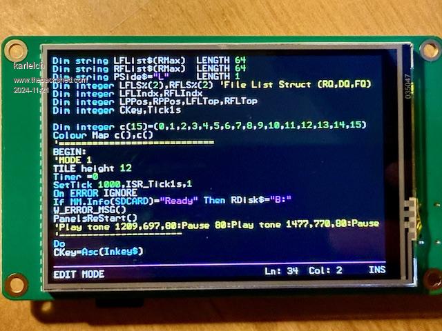 OPTION SYSTEM SPI GP10,GP11,GP12 OPTION FLASH SIZE 8388608 OPTION LCDPANEL ILI9488, LANDSCAPE,GP8,GP15,GP9,GP18 OPTION SDCARD GP22 OPTION COLOURCODE ON OPTION LCDPANEL CONSOLE OPTION DISPLAY 26, 60