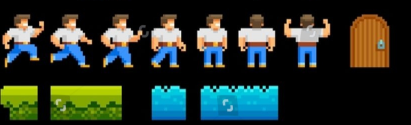 A typical sprite sheet is shown below. By blitting portions of it on to the game screen we can quickly build up quite a complex image.
