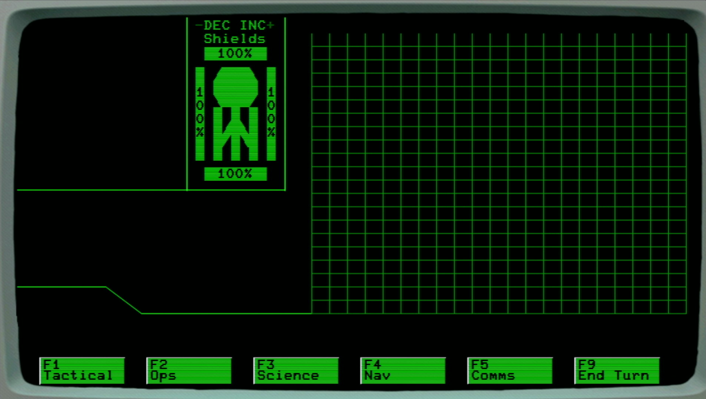 You are also restricted to using three actions each turn (moving 1 space, turning 45 or 90 degrees, firing phasers or firing a torpedo each take 1 action). Other tasks such as balancing shields etc. won't take up an action point. The count of Action Points is shown at the bottom left of the screen. If you buy bigger ships, or upgrade your crew, then you might get more actions per turn.