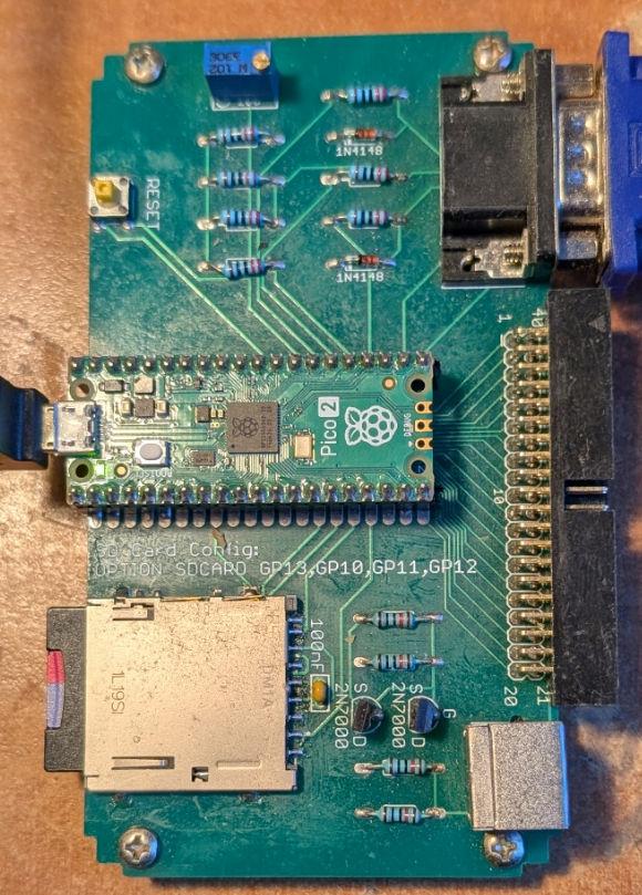 The boards have arrived and work perfectly. These were hand soldered and for the first time I used a low temperature solder paste and the heat gun. As you can see it worked perfectly and is pretty much indistinguishable from "factory". The PCBs cost £4.02 for 5 including tax and postage to the UK The 20-way sockets I've installed have long legs so the boards can be stacked ![]() There are two variants of the design as posted above. The last version uses the configuration OPTION AUDIO GP6,GP7 OPTION SYSTEM I2C GP14, GP15 and is compatible with Geoff's VGA board pictured above and on that board can be completely configured with OPTION RESET VGA DESIGN 2 The previous version is designed to be compatible with various of the Waveshare SPI displays like the Pico-RESTOUCH-LCD-2.8/3.5 and is configured with OPTION AUDIO GP4,GP5 OPTION SYSTEM I2C GP6,GP7 ![]() Edited 2025-01-22 02:28 by matherp |