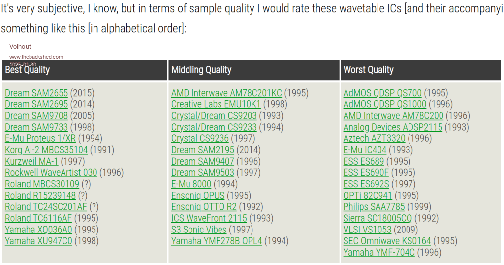 @Peter, There is a sound quality difference between the 1053 that is implemented in PicoMite, and the SAM2695 when it comes to MIDI. See this ![]() I can imagine people looking for the SAM chip..... source Volhout Edited 2025-01-30 07:15 by Volhout PicomiteVGA PETSCII ROBOTS |
