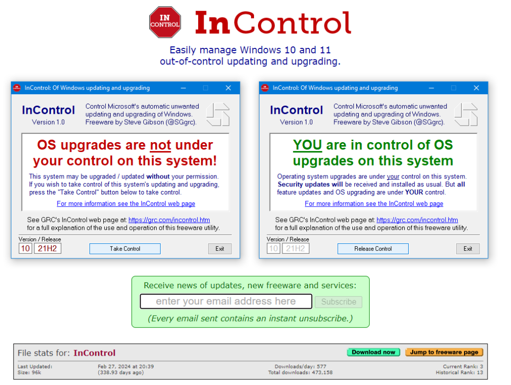 Forum Index : Microcontroller and PC projects : "InControl" also a free utility from Gibson Research