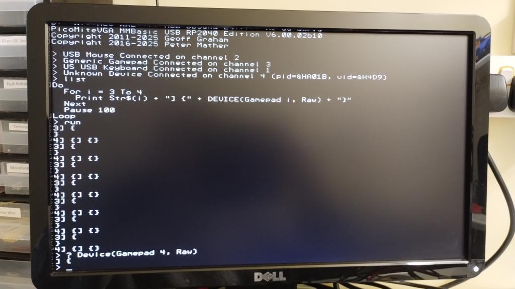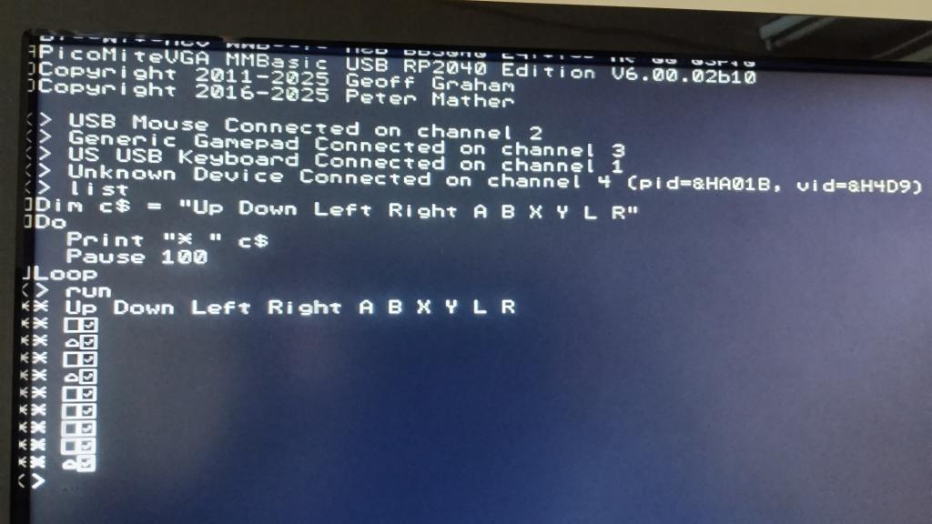 I needed to modify the firmware and I think these modifications are still in the current USB version. It's really messy, because at least this controller can "pose" as different gamepads and the interaction between the controller and the PicoMiteUSB is therefore a bit unpredictable ... Not a permanent solution.