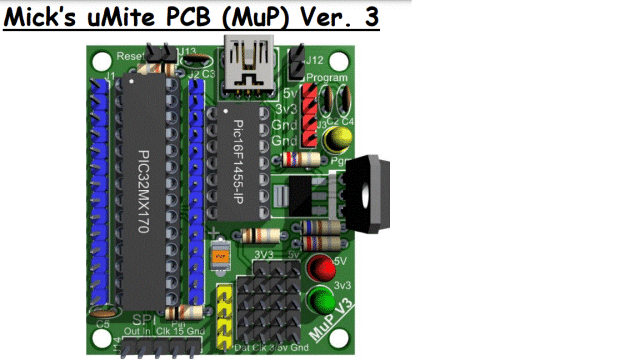 Hi Lance, All, Thank you for your glowing remarks about MuP V3. It has always been one of my favourite boards that I designed. I have released a lot of my MBG designs into the public domain but MuP3 wasn't one of them. Why? Because it still was a good seller, it alone kept me pumping out different design ideas, most of which failed to draw any attention. As I now have moved on to the Pico family I feel that I can also release MuP3 to the public. Give me a day or so (maybe this afternoon) and I will post it up on TBS. I still have bare PCBs available and will offer them for whatever anyone feels like offering providing it covers at least the postage if interested. Kind Regards, Mick (The Big One) . Edited 2025-03-09 12:20 by bigmik Mick's uMite Stuff can be found >>> HERE (Kindly hosted by Dontronics) <<< |