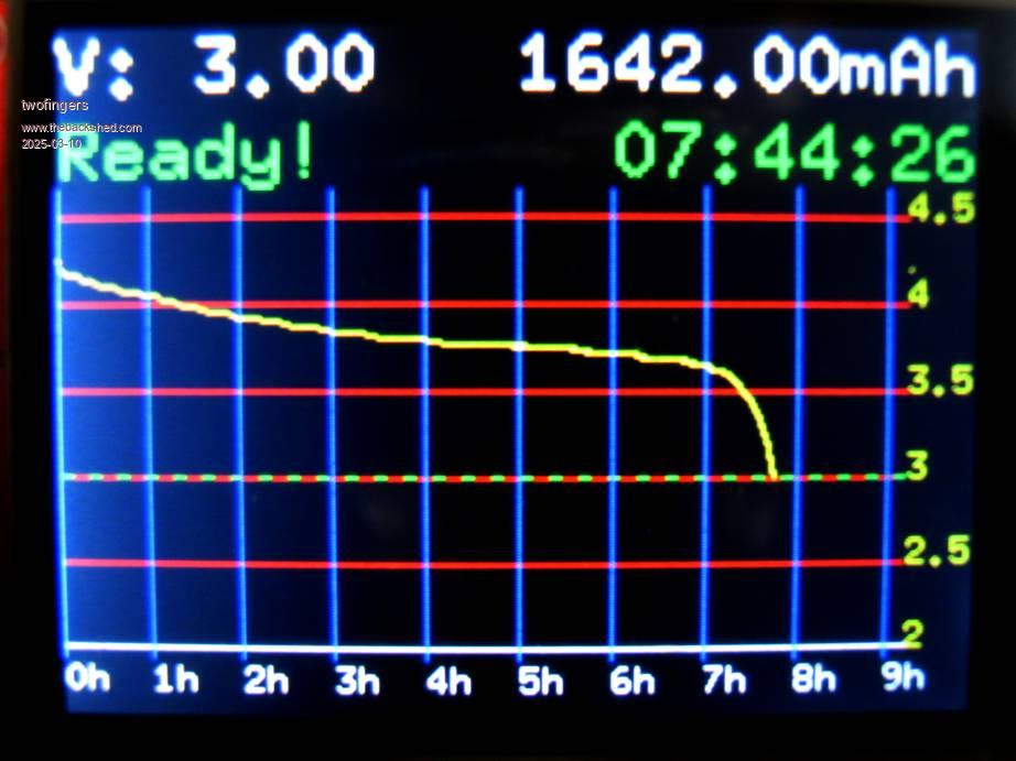 Ah--thank you. This is where my ignorance of fundamentals shows through. I'll await the arrival tomorrow of the adjustable load USB module. It should be far more accurate than what I was attempting with a capacitor. Since the 18650s I have are all vastly over-claimed with respect to capacity, I guess there's no way other than trial and error to find out what the C/20 discharge rate is--run the setup repeatedly with different resistance settings until it is detected that the battery module has shut off after 20 hours. I'm not looking for constant current--I'm looking for the discharge rate at which the battery/module lasts for 20 hours. Then the reading on the current monitor of mWh will give me what the battery should be rated at. PicoMite, Armmite F4, SensorKits, MMBasic Hardware, Games, etc. on FOTS |