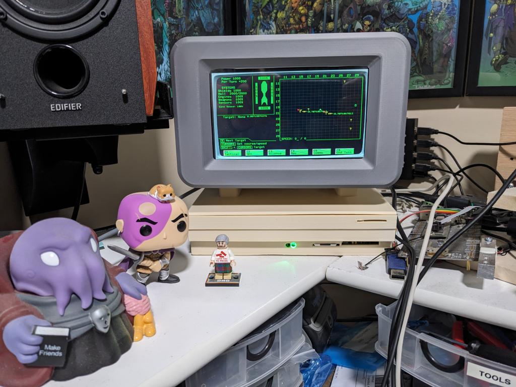 Thanks for the advice. I'm just starting out with 3D printing and learning the limitations/pitfalls. If I was designing it again, I'd use more subtle curves. It's the large curves on the monitor that really show up the layering. Having said that - I could probably tweak the settings on the printer to do a better job of smoothing them at the time of print. Oh yes! One of the reasons I made this, was so that I could stick it on my work desk and have the Star Trek game running in the background during office hours. It makes me very happy and whets my appetite for that evenings tweaking and coding. |