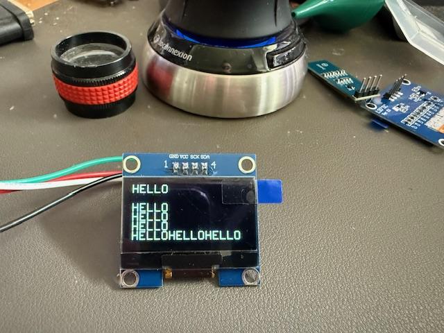 basic version 6.0001 , rpi2040 The manual says many modules are wired wrong without explaining exactly what is wrong. It's also not explained what base address the built in routines expect. (0x3c or 0x3d) Display is attached to physical i2c1 (not i2c0) option system i2c gp18,gp19 ' i2c1 port as system port option lcdpanel ssd1306i2c,1,2 i2c2 check &h3c ' returns 0 so the device is there comment : the naming of the i2c devices is confusing. i2c means physical i2c0 i2c2 means physical i2c1 i rewired the display to 0x3d and i2c2 check &h3d ' returns 0 if display wired to 0x3d Nothing appears on the display. Tried line and text commands. it would be good to be able to set the base address for the system display. like: option lcdpanel ssd1306i2c,1,2 ,&h3c option lcdpanel ssd1306i2c,1,2 ,&h3d any ideas ? any leads on what displays are known to work. ( 1.3inch. need 128x64 ) Thanks |