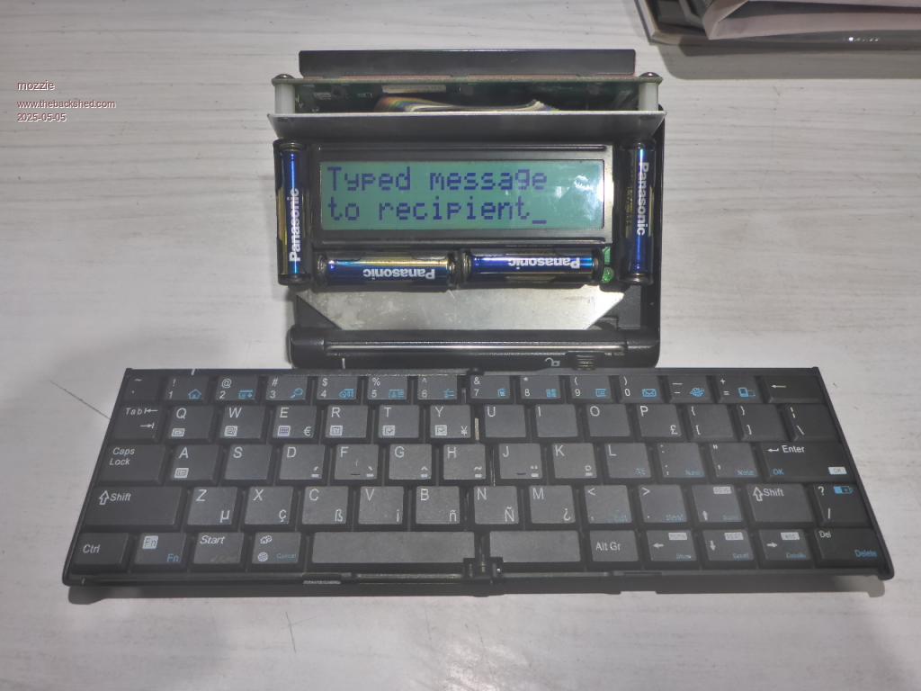 G'day James, That is a great looking unit you have built and is there anything Lego can't do? This is a bit off topic but those pics gave me a sense of Deja vu... The unit shown below was built for a mate when he had his voice box removed due to cancer, whilst waiting for his talking valve to be fitted and learning to use it. Turns out he types slower than I do, so not sure how useful it was but it was a great learning curve. The Palm keyboard outputs IRDA and a PIC16F88 decodes it and outputs the ASCII codes to the LCD's and controls power etc. Took about 3 days to figure out the keycodes etc. Battery life is great, its been on a shelf for years and although 1 battery had leaked the others still showed signs of life. Regards, Lyle. |