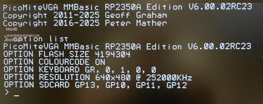 PicoMiteVGA MMBasic USB RP2350A Edition V6.00.02RC23