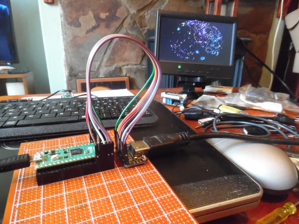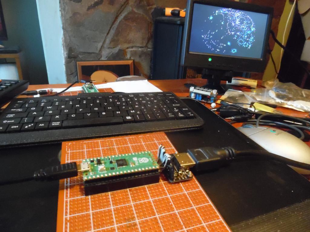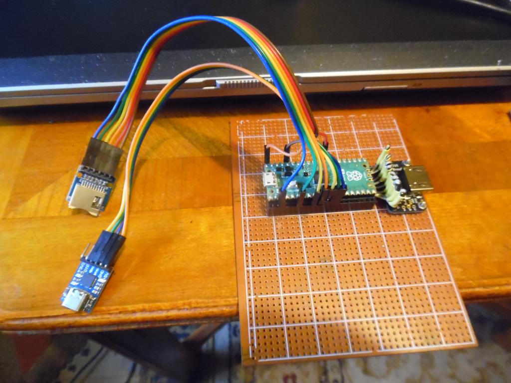 I flashed the hdmi usb and temp wired a usb c to ttl and used the 5V to power pico pin 40 vbus. I got a usb keyboard connected that's uk but always start with mum lock on and  always types daft chars.