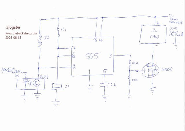 If the fans are 12V I see use for a 555 here. :) Mick Zilog Inside! nascom.info for Nascom & Gemini Preliminary MMBasic docs & my PCB designs |