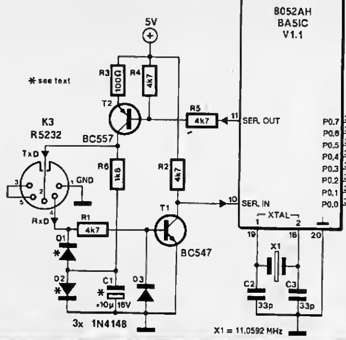 Long-long ago (1987/11) the ELEKTOR magazine published an interesting project with the 8052AH-BASIC microcontroller.. Very clever in the schematics: A cheap RS232 interface without IC (MAX etc.): ![]() Used it several times in other applications. BUT: it only works, if the remote has a full RS232 ! bfwolf |