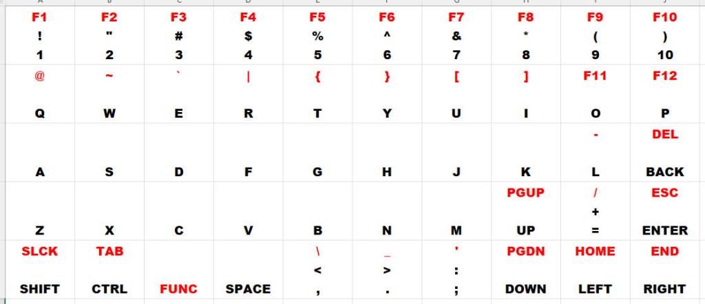 I'm going round in circles on the keyboard for this. The intention is that the device is properly open source, can be built be anyone, buying in bits from JLC and putting it together yourself with a case that you can 3D print yourself of get JLC to print one for you. The keyboard is the difficult area. For my prototype I've used a keyboard overlay from a commercial mini bluetooth keyboard but this is expensive and quite small to use. My latest concept is to use 12x12mm Tactile switches (as used in the Game*Mite but with a square 12x12 keytop) in a 10x5 matrix. This should be easier to use and it should be easy to get vinyl stickers made for the keys. My proposed layout is ![]() The limited number of keys does mean some fairly important characters will be need the FUNC key held but going more than 10x5 starts to be too big for a handheld device. As always - thoughts appreciated |