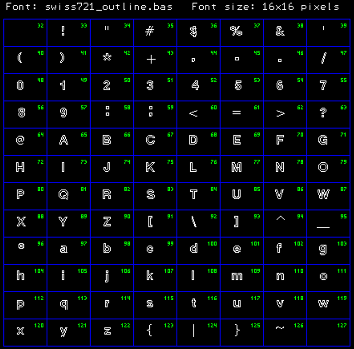 Hello I have looked at the font "Ubuntu.bas" and found a small "error", char 123 is not correct. ![]() I have adjusted this with the program FontTweak which is also included when you download the PicoMite firmware. I am sending an adjusted file here. Ubuntu-fixed.zip /Peter63 |