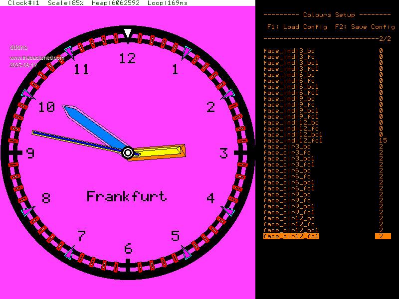 I have written an UI to build an analog clock with various elements. All the parameters can be setup with this, at the moment there are 5 designs which can be altered as you like. There are 3 sections for dimensions, colours and the clock hands. Every section can be saved to disk or the whole object as a snapshot.