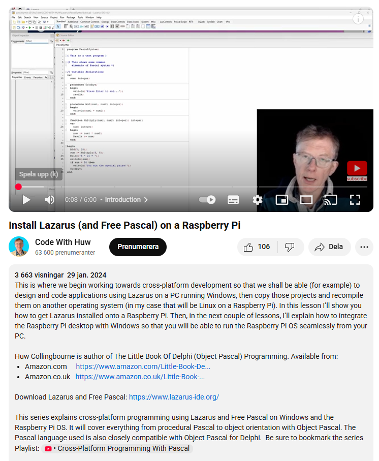 I've looked into it a bit more and, Yep, there's a lot on YouTube that shows how to use it, together with the Raspberry Pi. Now Python is perhaps the language I usually use when programming on the Raspberry Pi, but it's interesting to have another IDE that you might be able to use (even if it's Pascal language). ![]() /Peter63 |
