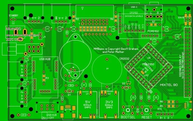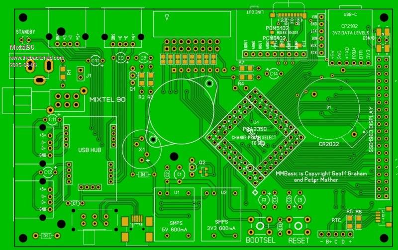 Hello Mixtel, nice to hear, that you further develop this project! If you are willing to release the gerber's once you are finished my plan is, to mill and build a prototype. I think this should be done as the trace length of rd,ws,rs needs to be tested to have an error free picture. I experienced problems with full standard PicoMite colours like R,G,B but a photo with RGB888 with the same setup looks good because only colours set to 255 cause these problems. On the other side I found, that once the electrical conditions are met, it runs very solid. Maybe it would be an idea, to implement the "CS combined" circuit to free one more GP and to have display's reset pin permanently high and free another GP. Maybe with a jumper. I have with your setup 17 free GP's The idea with Peter's keyboard is great and on top yours to have a 2040 being the keyboard driver which converts to PS/2 is even nicer and you have another project..to develop the firmware :) maybe a XL version in future? I think it's worth mentioning, that I think that any size of ssd1963 displays with this interface type can be driven with your board. |