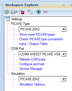 Connect your 20X2 chip(or whatever chip), then click on the blue line below the PICAXE type drop-down box, that says: "Check PICAXE type connected" You should get a response and confirmation from PE. That's quite possibly your problem right there. For USB programming of PICAXE chips, you really should ONLY use the RevEd USB programming cable. More expensive then the cheap Chinese copy, yes, but there is a reason the copy is so cheap. Get a genuine AXE027 cable, and I bet your problems will vanish. I wouldn't mind betting, your problem is the cheap copy cable, in other words. Smoke makes things work. When the smoke gets out, it stops! |